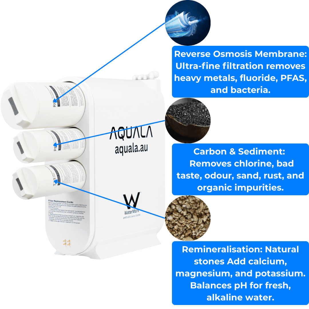 Even treated Australian tap water can contain PFAS, lead, chlorine, and other contaminants.