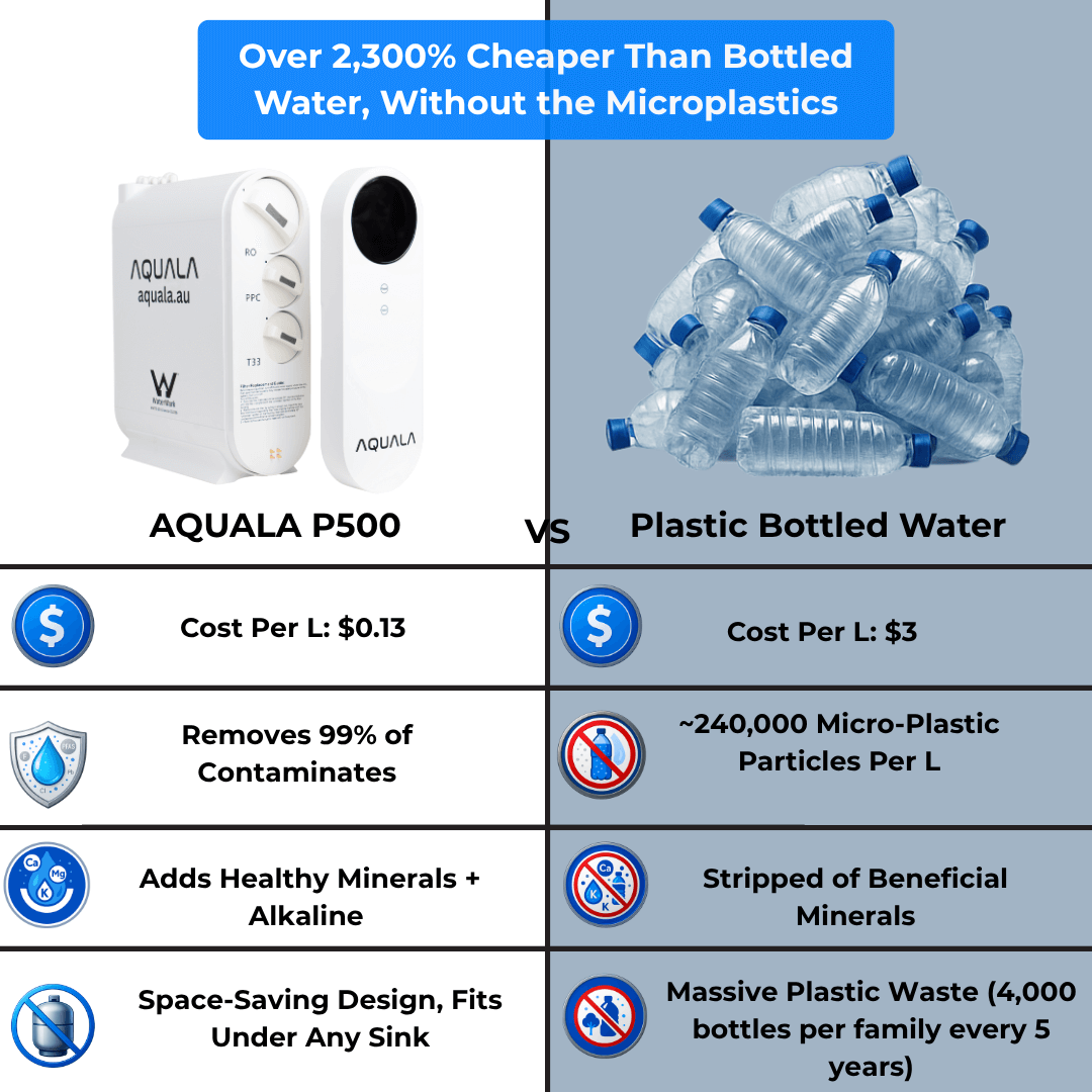 The AQUALA P500 gives you unlimited pure, alkaline water straight from your tap for a fraction of the cost.